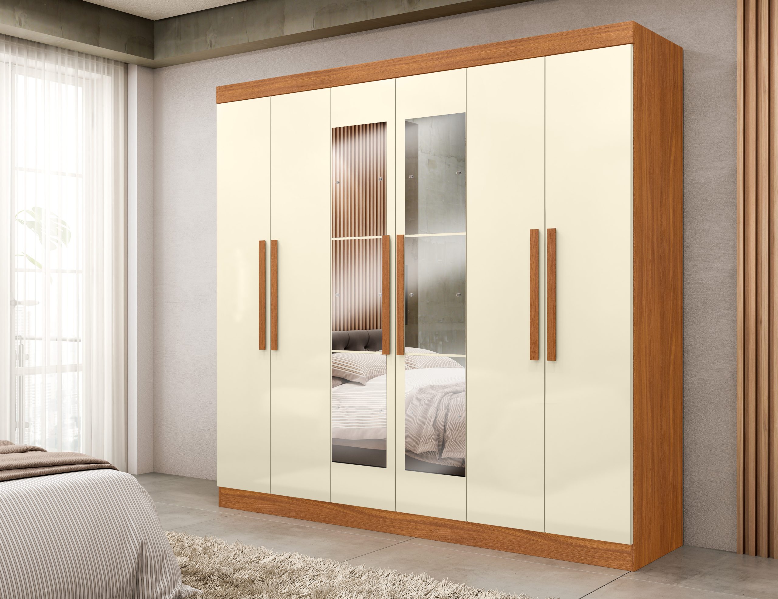 • Padrões de cores Ipê Tex e Capuccino Tex com acabamento texturizado e aplicação de verniz fosco;